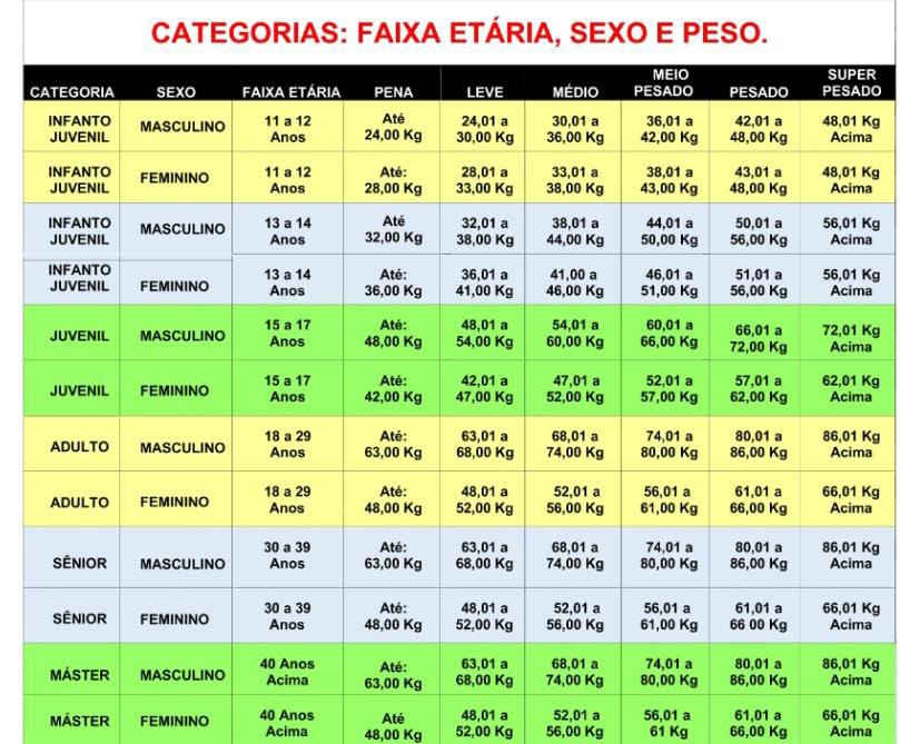 ⚠️ A categoria deve refletir a idade válida no ano da competição.